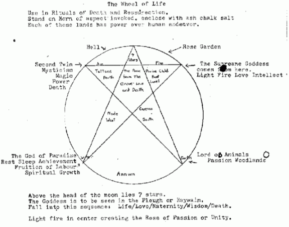 It was considered in the past that Man could help the Gods, as the Gods helped Man. In fact, you will find that in many fairy stories, they deal with this matter allegorically. It is from these and many similar stories, i.e. Sir Gawain and the Hollen Bush; Tristam and Isobel; Launcelot and Geneveve, and others that a pattern of magical myth and legend may be woven, often with surprising results and effects. To effect a magical ritual of this nature, one enacts it with various implements and tools that have the same symbolic meaning as the Gods involved.