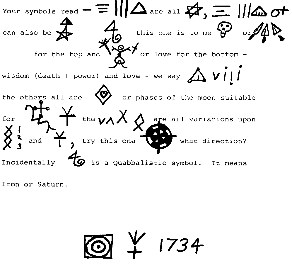 Many thanks for your calendar, and especially for the crossed owl feathers upon the back, a blessing only a "witch" can understand Life...Love...Wisdom, or as we're taught to say, 'Flags, flax, fodder' I return them back to you with my good will. Different traditions, but the same basis. I noticed that you wrote to us in Theban script, which I translate as "Three hundred and sixty-five days of happiness," Ta, ever so.